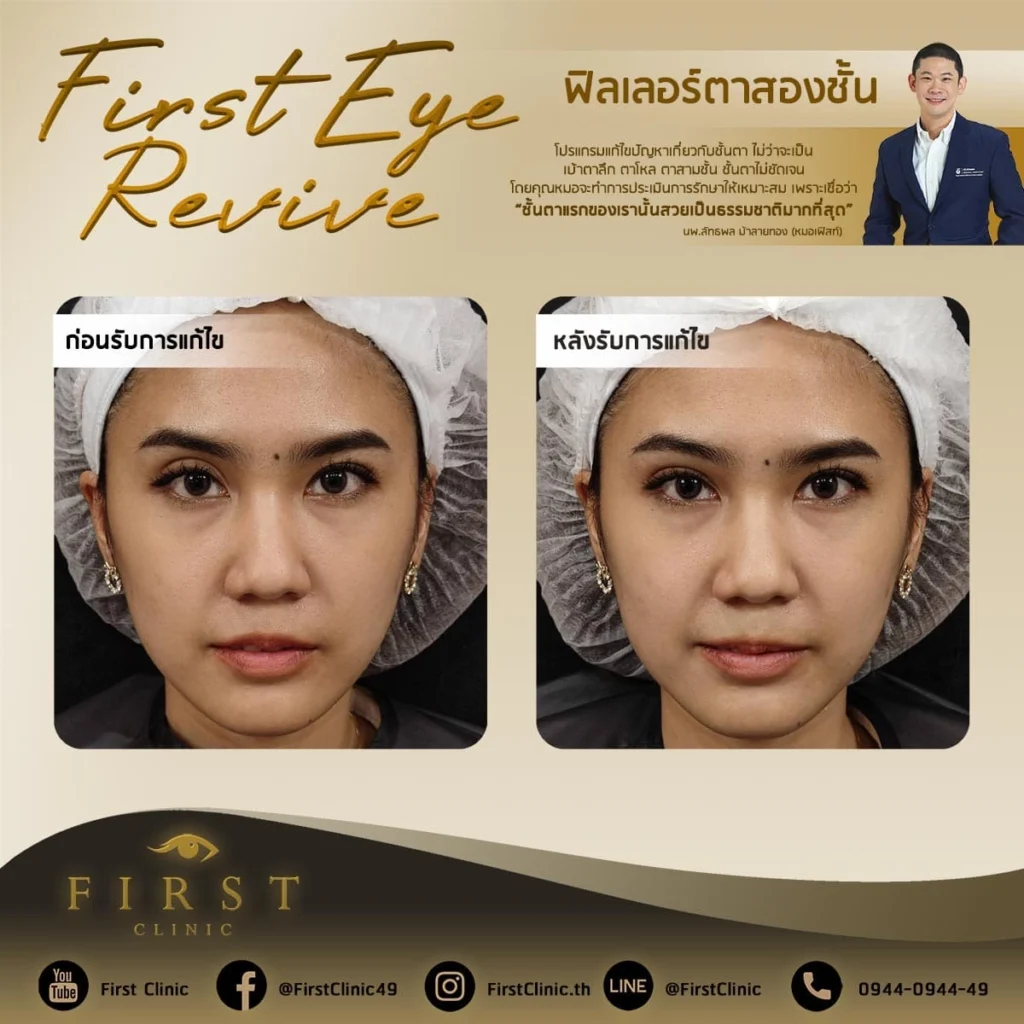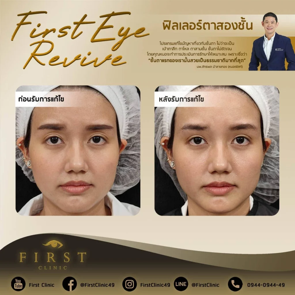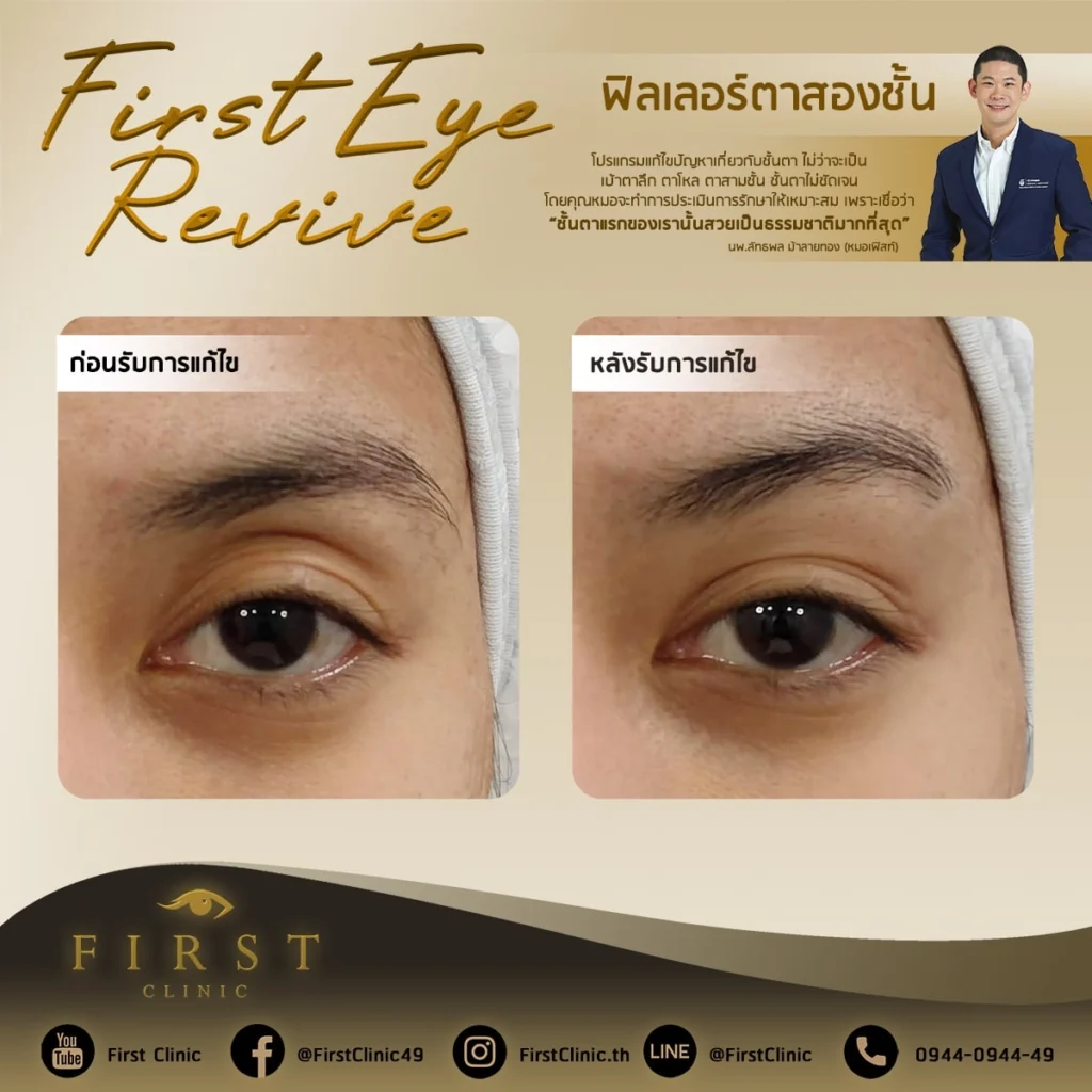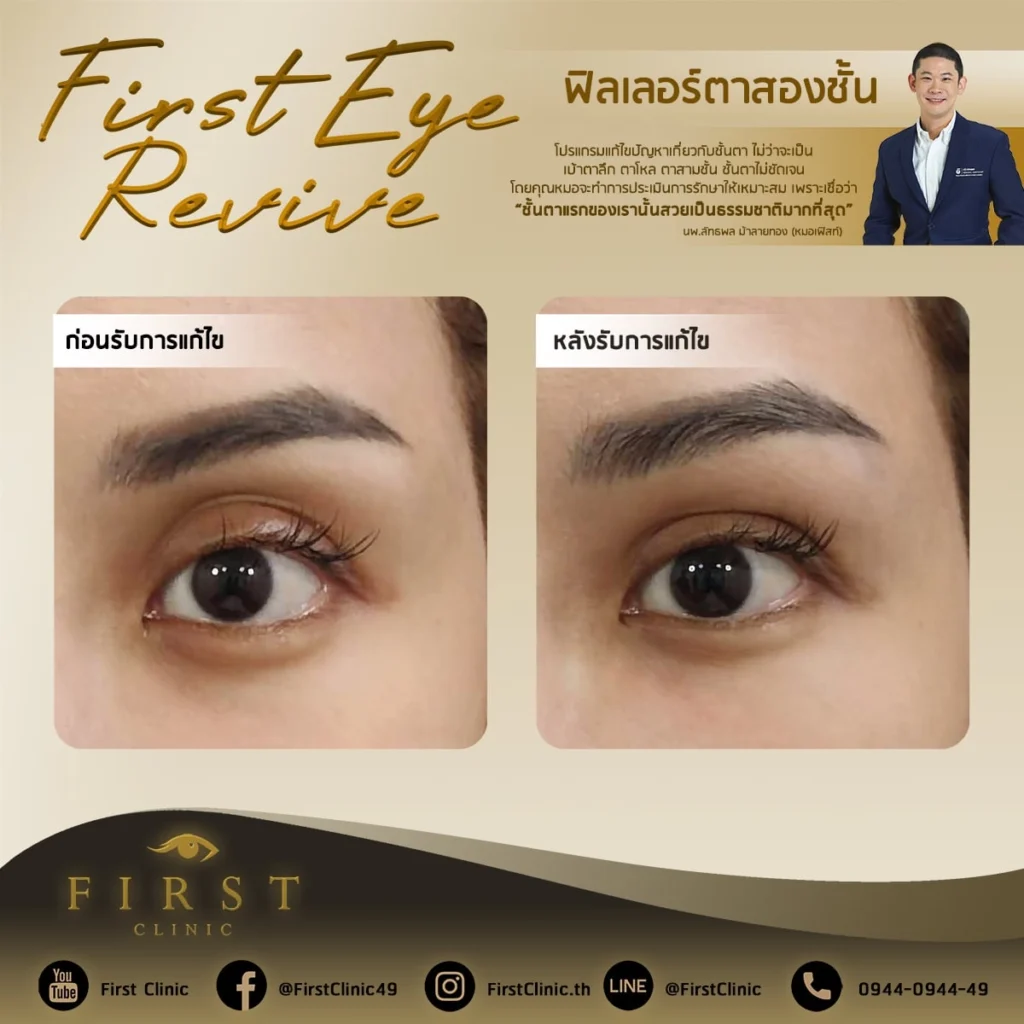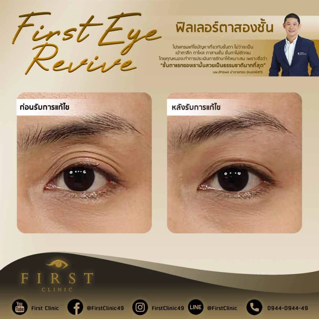 สวัสดีครับ ผมหมอเฟิสท์ จักษุแพทย์เฉพาะทางด้านกระจกตา และ แก้ไขสายตา พร้อมดูแลปัญหารอบดวงตา มีประสบการณ์มากกว่า 15 ปีในการฉีดฟิลเลอร์ เพื่อแก้ปัญหาตาสามชั้น เบ้าตาลึก รอยคล้ำใต้ตา ถุงใต้ตา รอยย่นรอบดวงตา โดยไม่ต้องผ่าตัด